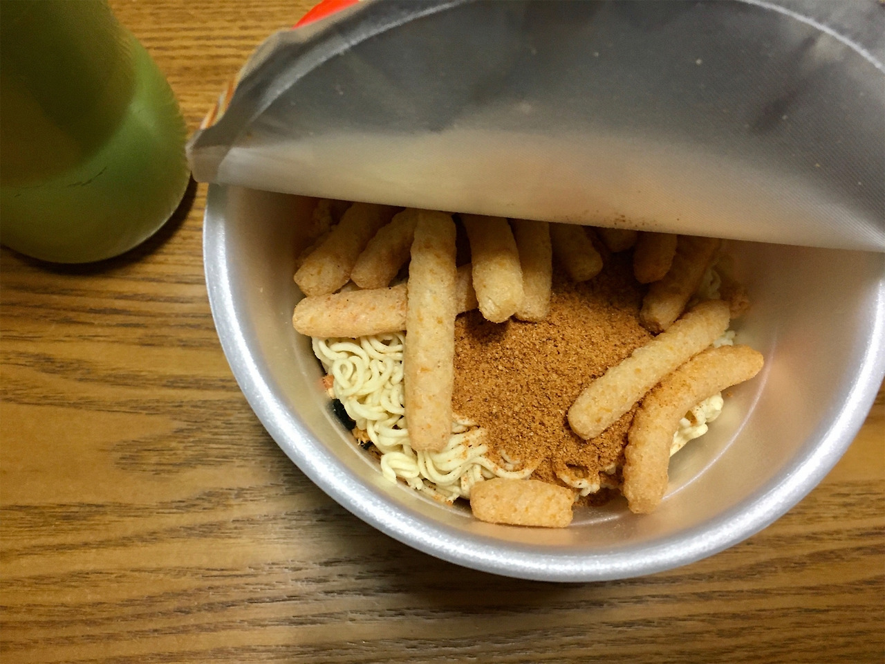새우깡은 그냥 먹어도 맛있는데 만약 '새우맛이 아주 많이 나는' 새우탕면을 먹고 싶다면 새우깡을 같이 넣으면 된다. 요컨대 편의점에 왔다. 컵라면이 먹고 싶어서 새우탕을 집었다. 그런데 새우탕 만으로는 새우의 맛이 덜 난다? 편의점에도 펄펄 뛰는 새우를 판다면 사 넣겠지만 그럴 형편이 못 되니 새우깡을 한 봉지 구입한다. 그리고 새우깡을 왕창 붓는다. 새우깡은 많이 넣으면 넣을수록 라면에서 새우의 맛이 가득 난다.