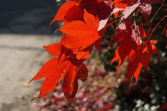햇볕에 비치는 단풍 잎이 제대로 빨갛습니다.