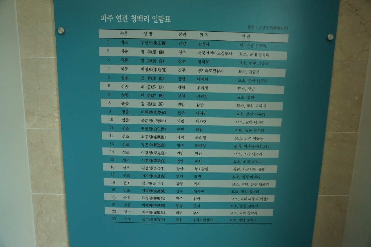 그런데 특이한 점은 파주에 청백리들이 많이 거주하셨다네요.