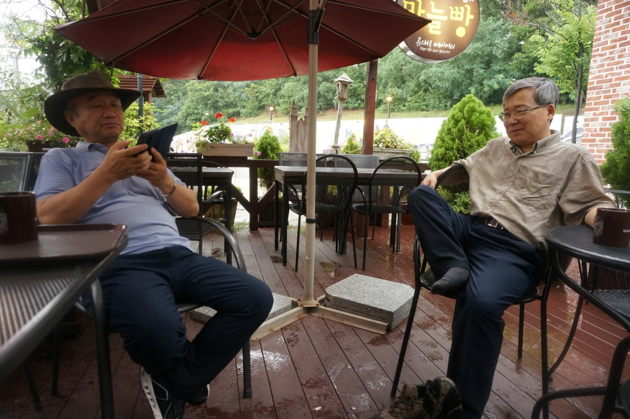 아늑한 실내도 있지만 일부러 처마 밑으로 나왔습니다.