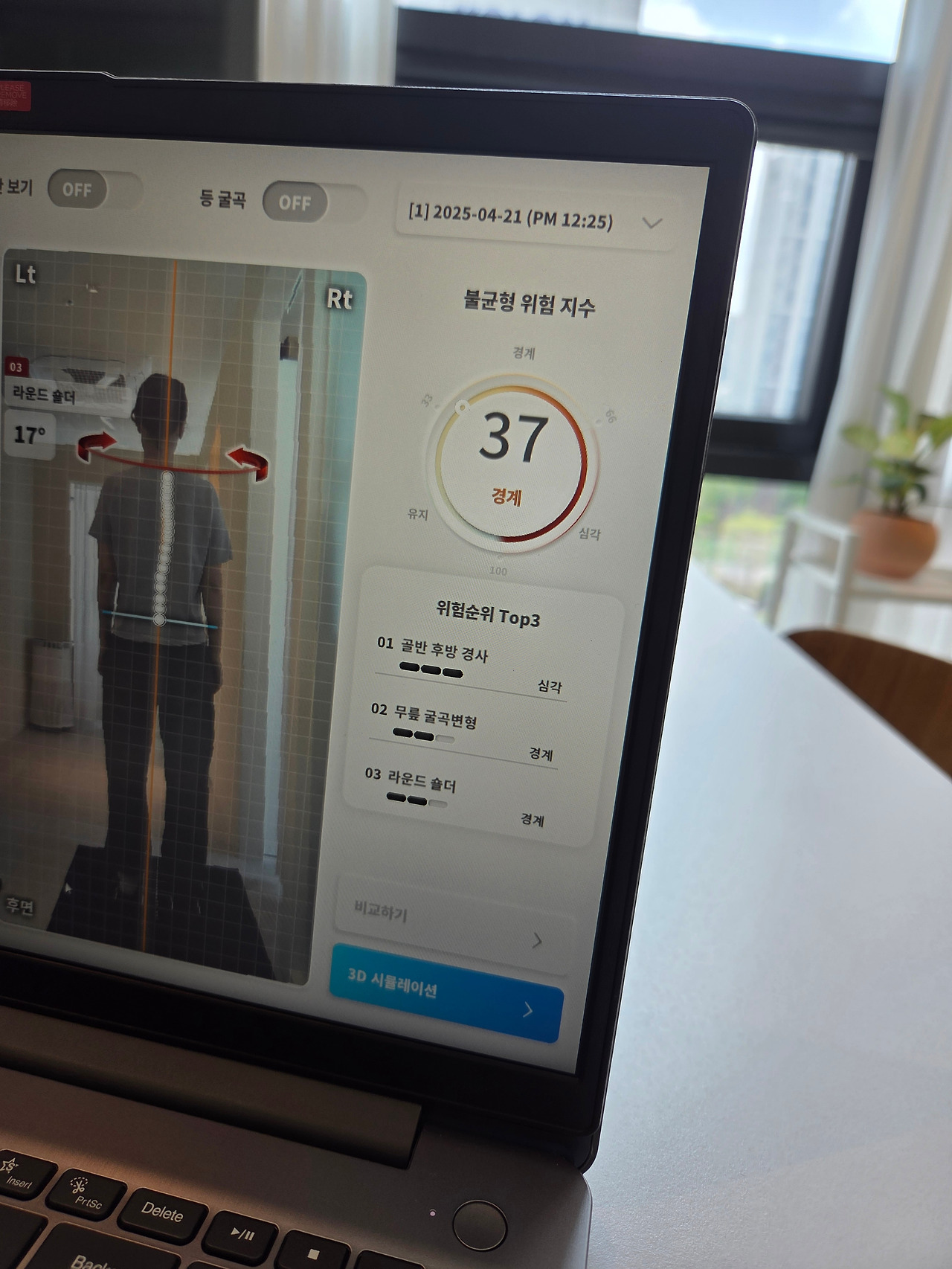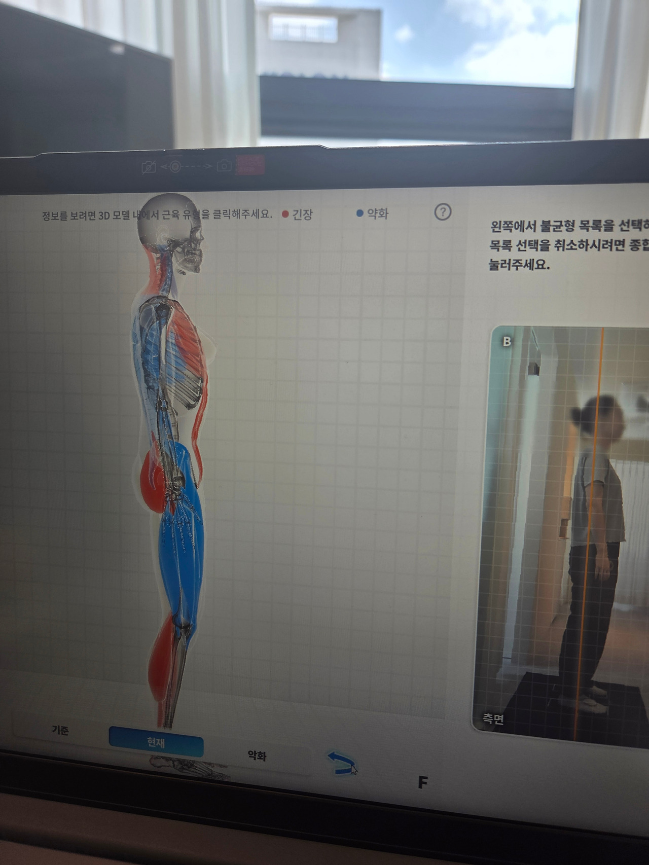 사진에서 보다시피 목뒤, 엉덩이 뒤, 종아리 뒤에 빨간불이 들어왔다.