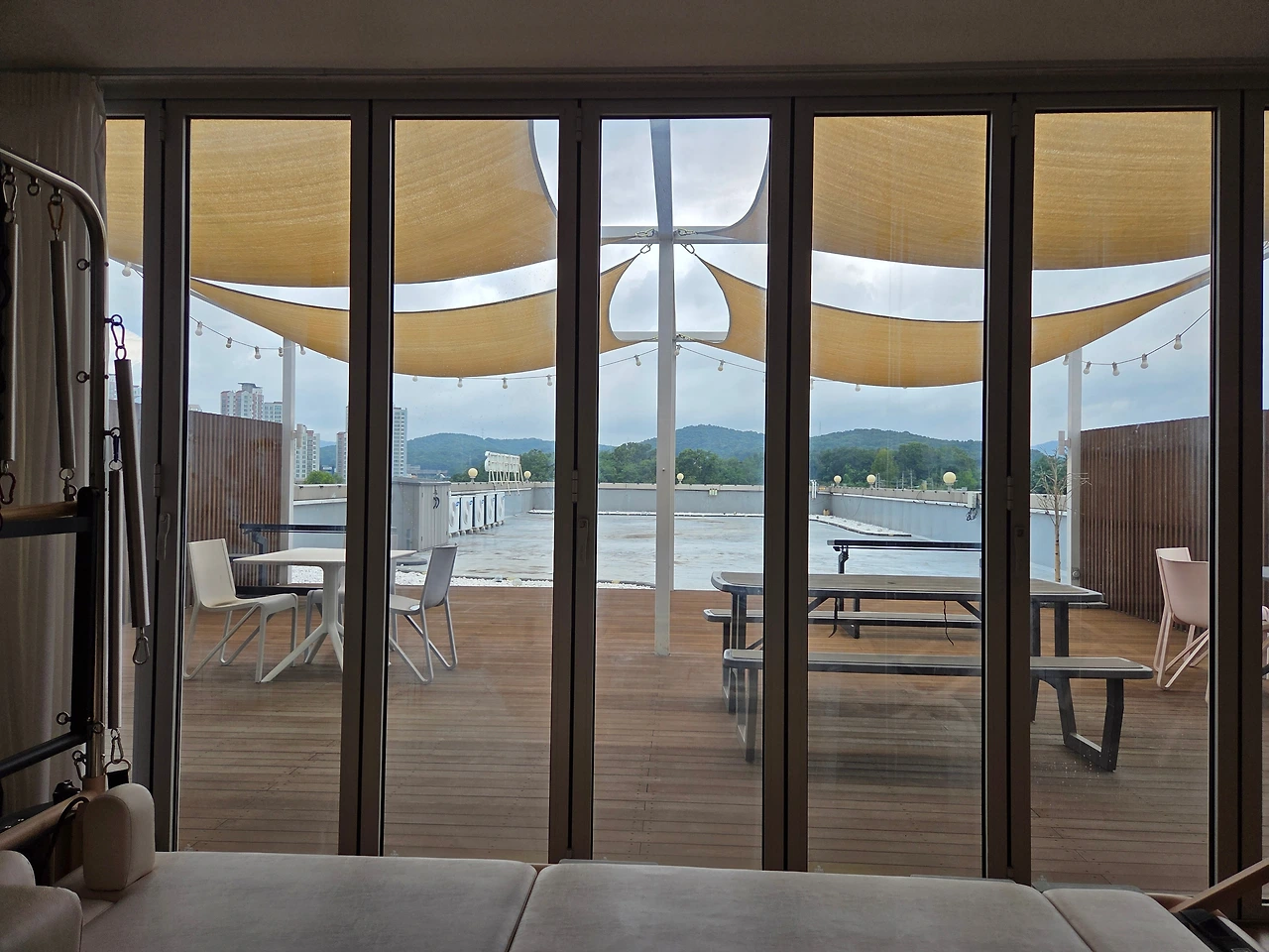 점심시간, 31도의 사무실에서 36~7도의 야외를 10분 정도 가로지르면 25도의 필라테스 학원에 도착한다.