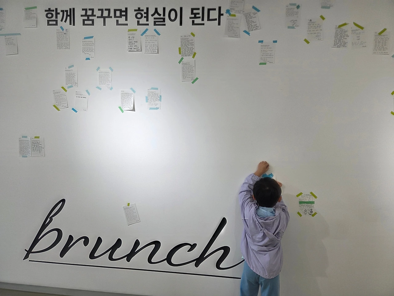 함께 꾸면 이루어진다는 벽면에 아들이 사랑을 그려 붙입니다.
