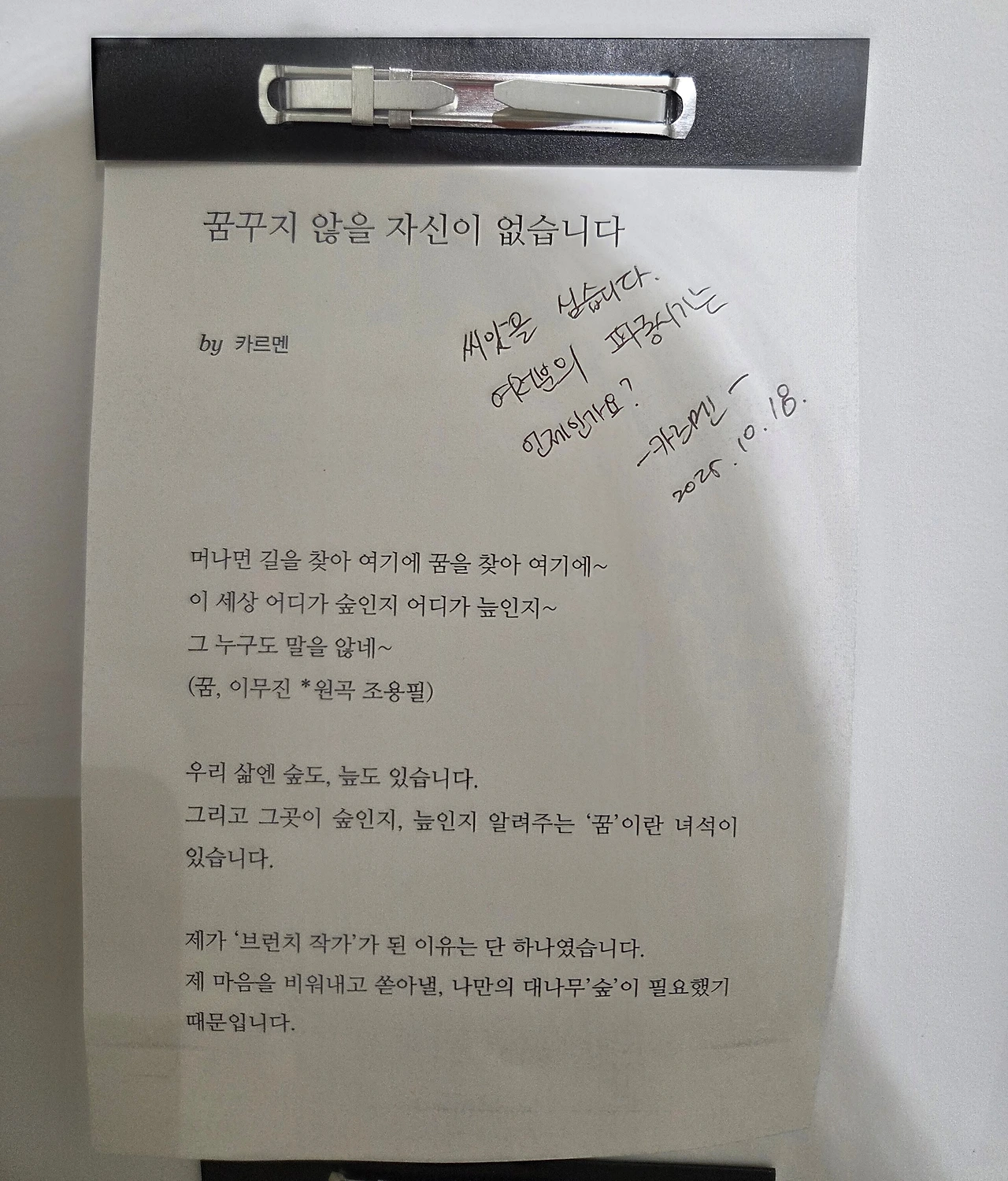 어느새 제 글이 한구석 벽면을 차지하고 있더군요.
