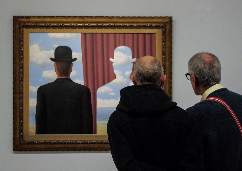 이것은 마그리트 그림을 관람하는 풍경을 찍은 사진이다.
