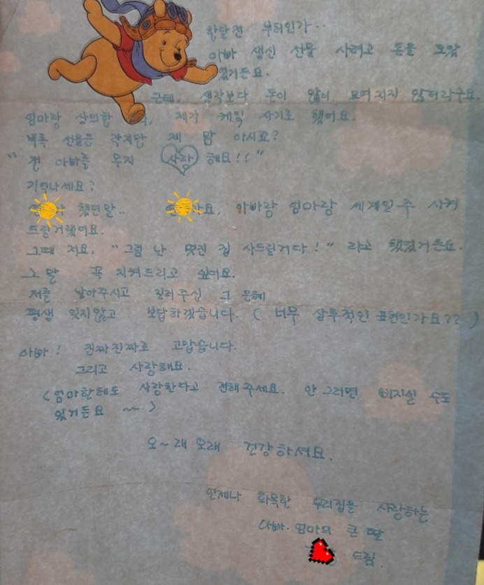 대체 몇 살 때 썼는지 기억도 나지 않는 편지가 대청소 중에 발견되었다. 아빠 생신선물로 드렸던 나의 손편지.