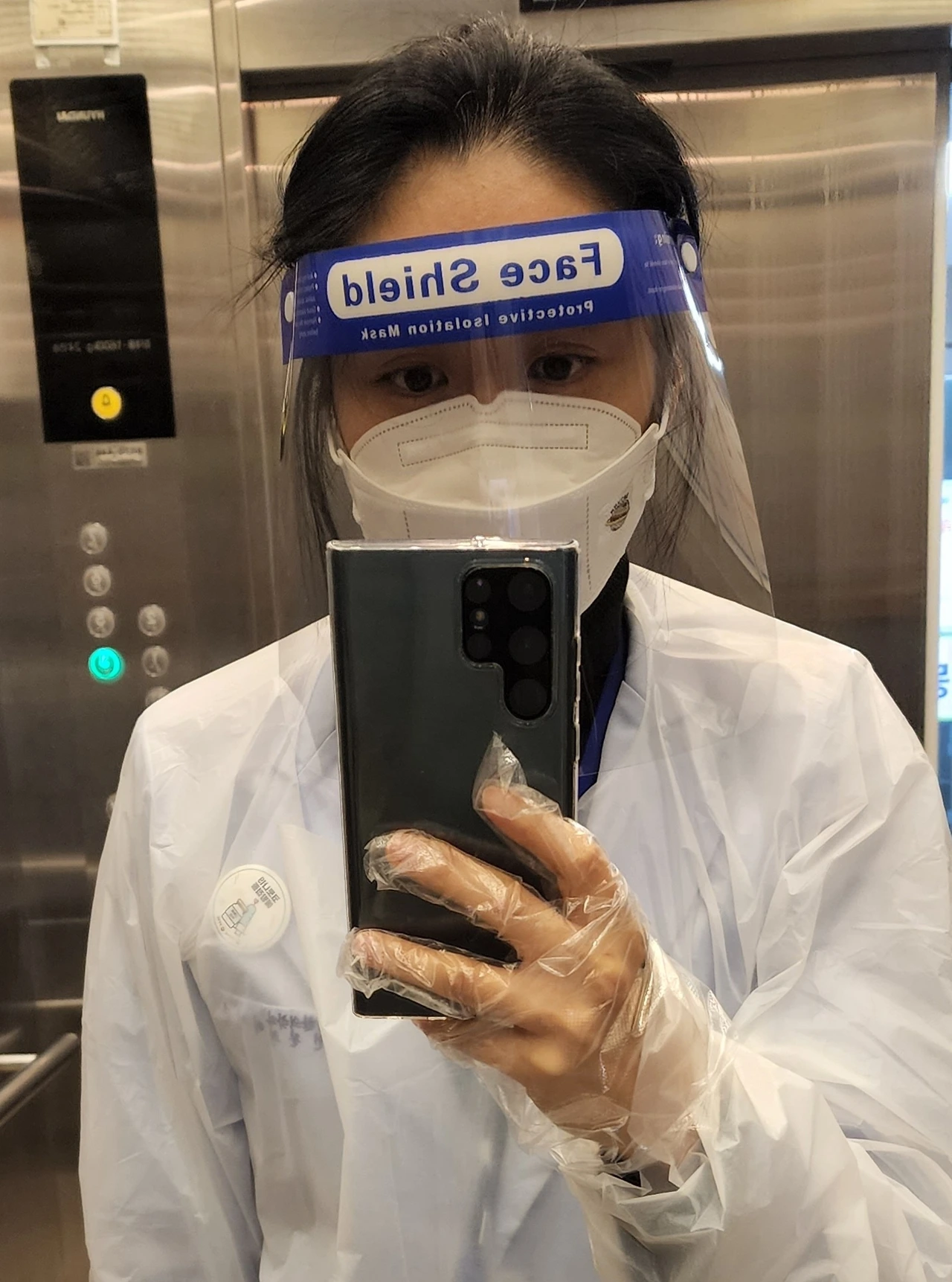 이제는 확진되지 않은 2 병동과 6 병동 환자분들을 만날 때조차 보호장구를 하라 해서 이런 모습으로 다닌다..