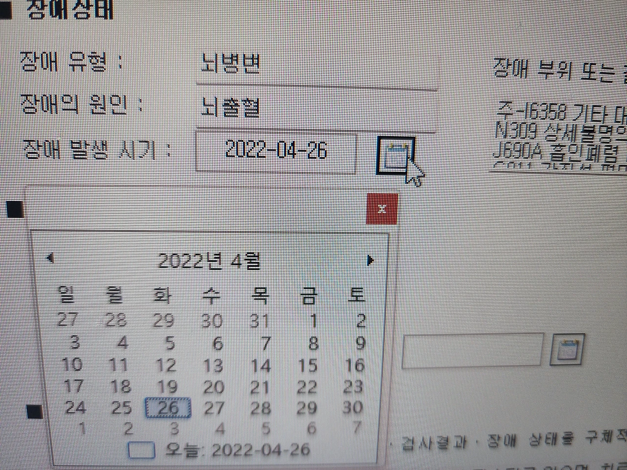 발병 년 월 일을 쓰는 칸을 채우려고 달력을 뒤적뒤적거리는데 환자분 얼굴이 딱! 떠올랐다.