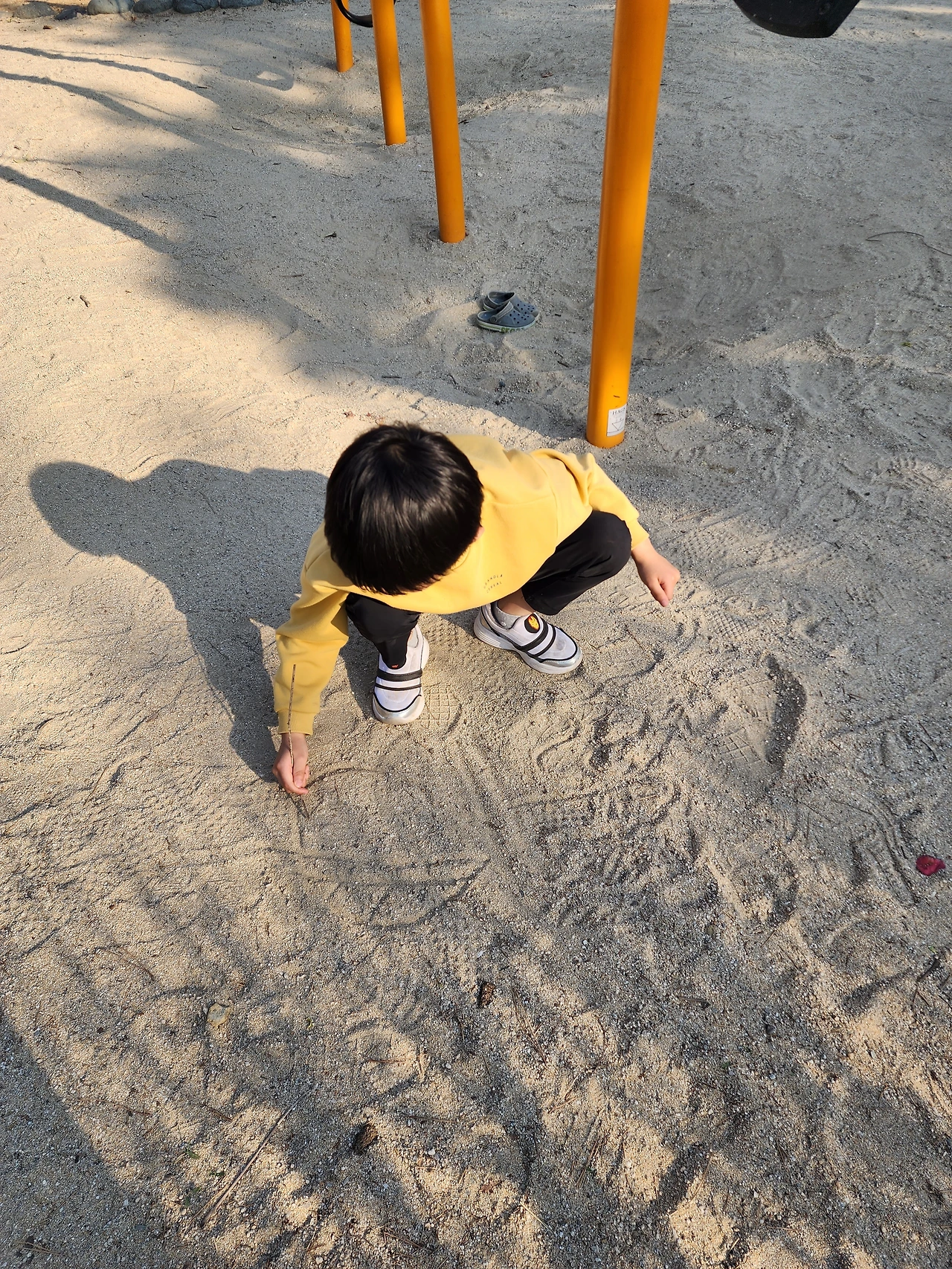 흙놀이를 실컷한 둘째의 손톱을 깎아주는데