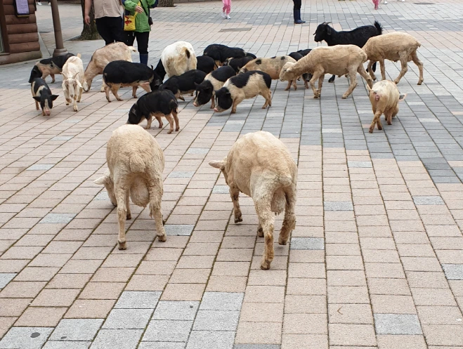 퍼레이드 중간에 먹이 먹는 아기동물들^^