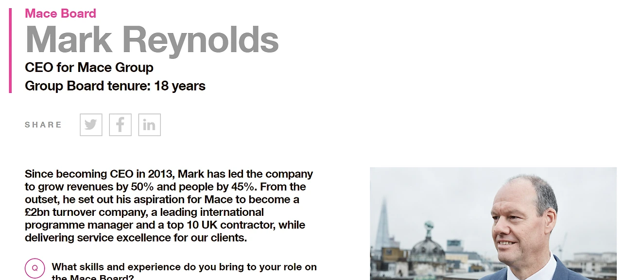 그리고 최대 주주인 Mr. Reynolds 씨는 예상하신 바와 같이 MACE Group의 CEO입니다.