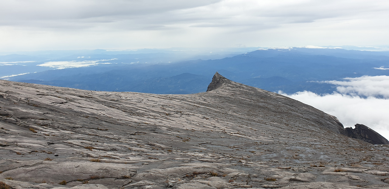 이렇게 너른 너럭바위라니! 산 봉우리 하나가 바위 하나인 듯한 엄청난 봉우리 위에 오르자 정상인 로우 피크(Lows, peak)가 눈앞에 나타났다. "700 meter to go" 가이드의 목소리에 젖 먹던 힘까지 끌어내 젖은 솜처럼 무거운 발을 들어 올렸다.