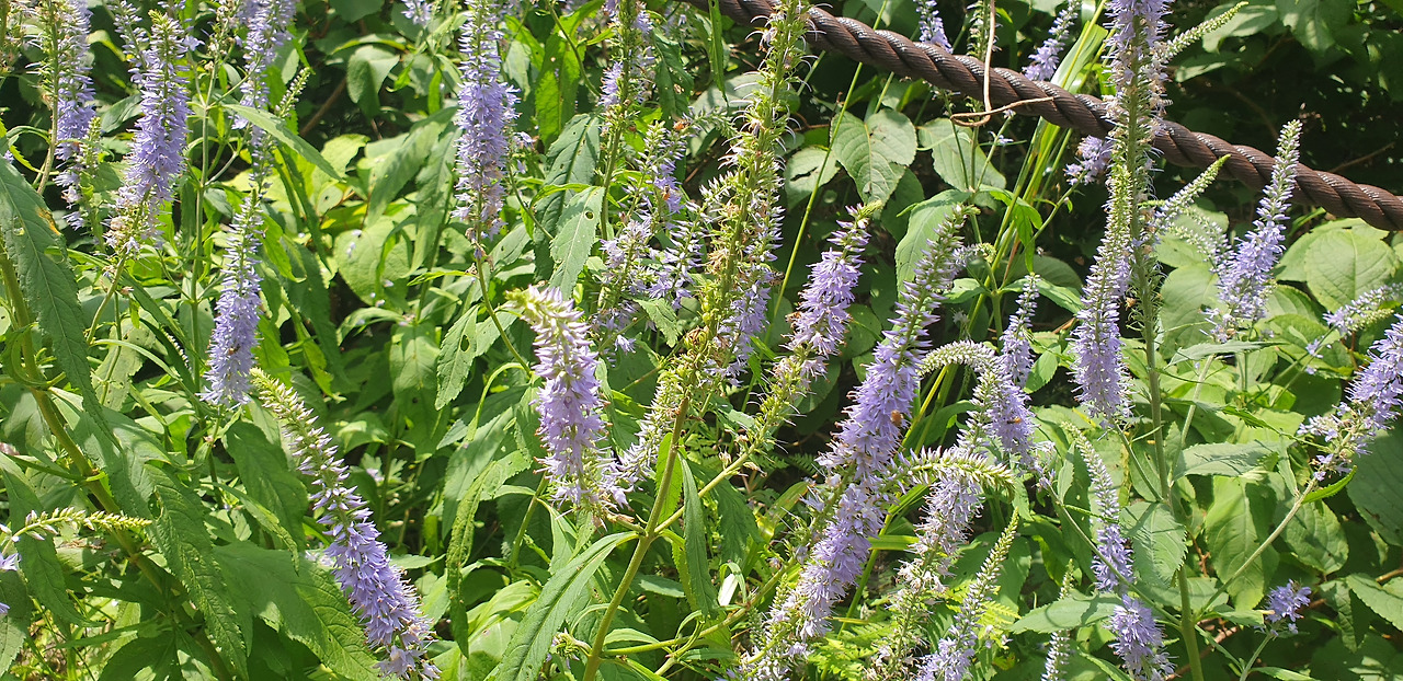 사이사이 주황 동자와 나리꽃, 보라 긴산꼬리풀, 신부의 부캐를 닮은 순백의 어수리가 자태를 뽐낸다. 화가의 펜화를 보는 듯한 분홍 둥근이질풀과 수줍어 보이는 솜다리 덕분에 눈과 코가 호사를 누린다.