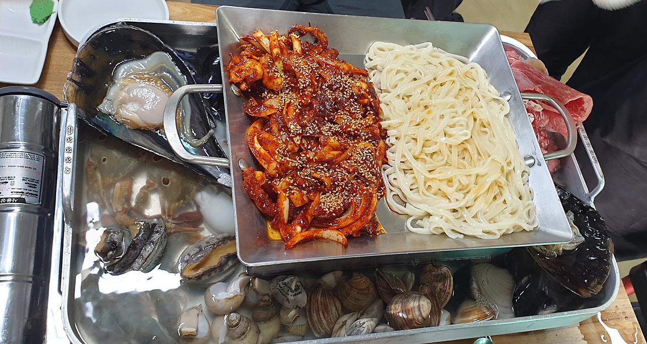 "대왕해물철판전골", 바다를 다 담아 놓은 듯한 비주얼의 처음 맛보는 요리였다.