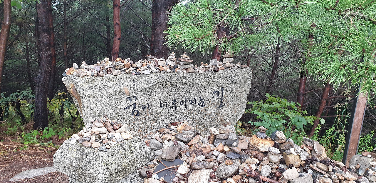원 일정엔 없었지만, 일부러라도 동해까지 와서 먹어 볼만한 음식점이라며 저녁 식사를 추가했다. 문제는 식당이 일찍 닫아서 5시까지는 정동진까지 완주해야 한단다. 느긋하던 발걸음이 빨라졌다. 곳곳에 철책과 경비초소가 남아 있는 산길을 그야말로 '특전사'처럼 내달렸다.