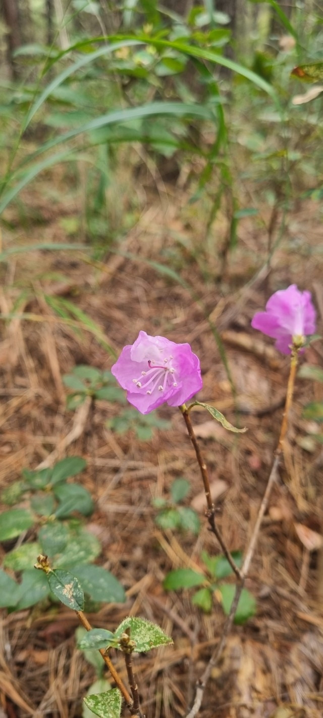 생각보다 오르내림이 심하고, 9킬로라는 거리도 만만치 않다. 배산임수가 아닌 우산좌해의 기막힌 풍경의 숲길이 펼쳐졌다. 괘방산 정상까진 놀며 쉬며 느긋하게 걸었다. 철 모르는 진달래와 꼭 불꽃놀이 불꽃을 닮은 산부추가 눈길을 끈다.