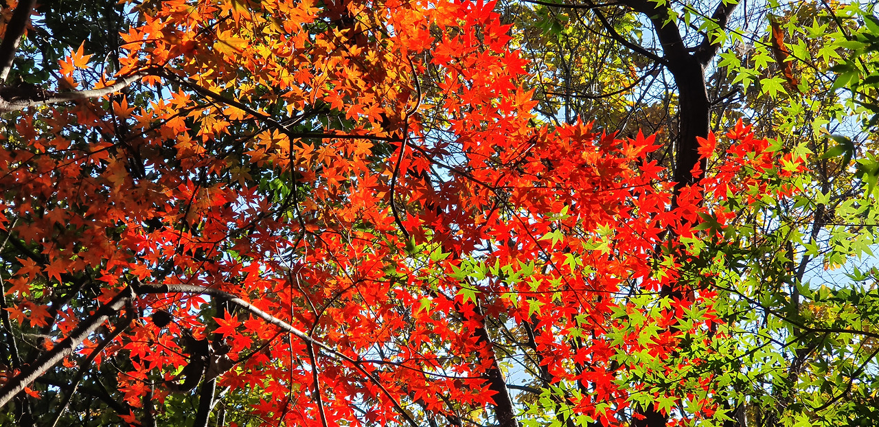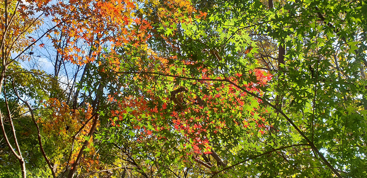 그래도, 아직 푸릇한 잎도, 붉고 푸름이 섞인 잎도 모두 아름답다.