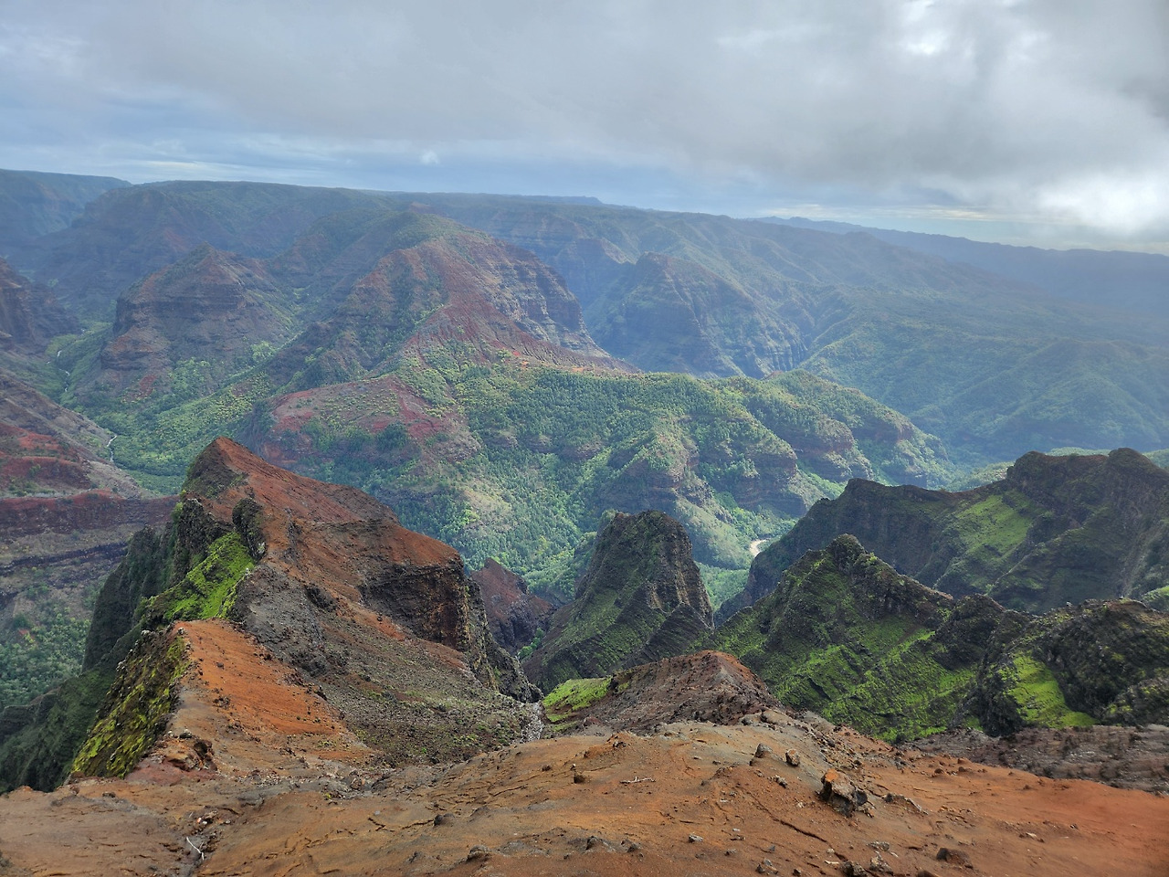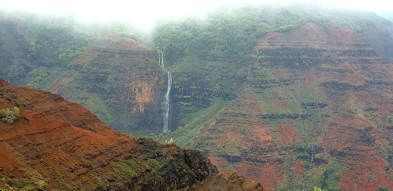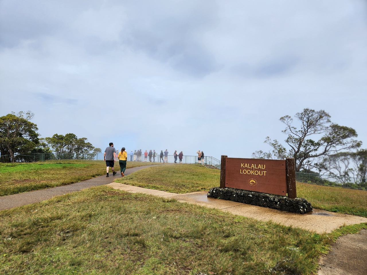 최악의 상황은 여기서 끝나지 않았다. 아침 6시 비행기가 다시 연기되어 14시 30분 비행기로 티켓팅이 되었다는 것이다. 원래 대로라면 어제저녁 오아후로 돌아가 쉬고, 오늘은 쿠알로아 랜치라는 곳에서 어드벤처 투어를 하기로 되어있었다. 모든 계획이 수포로 돌아가고 오후 2시 반까지 계속 공항에 있기도 힘든 상황. 다행히 날씨는 많이 개었다. 어제 곰탕 때문에 아무것도 보지 못했던 터라, 현지여행사에 추가 비용을 지불하고 와이메아 캐니언과 칼랄라우 협곡을 한번 더 오르기로 했다. 다행히 환상적인 와이메아 캐니언을 직관할 수 있었다.
