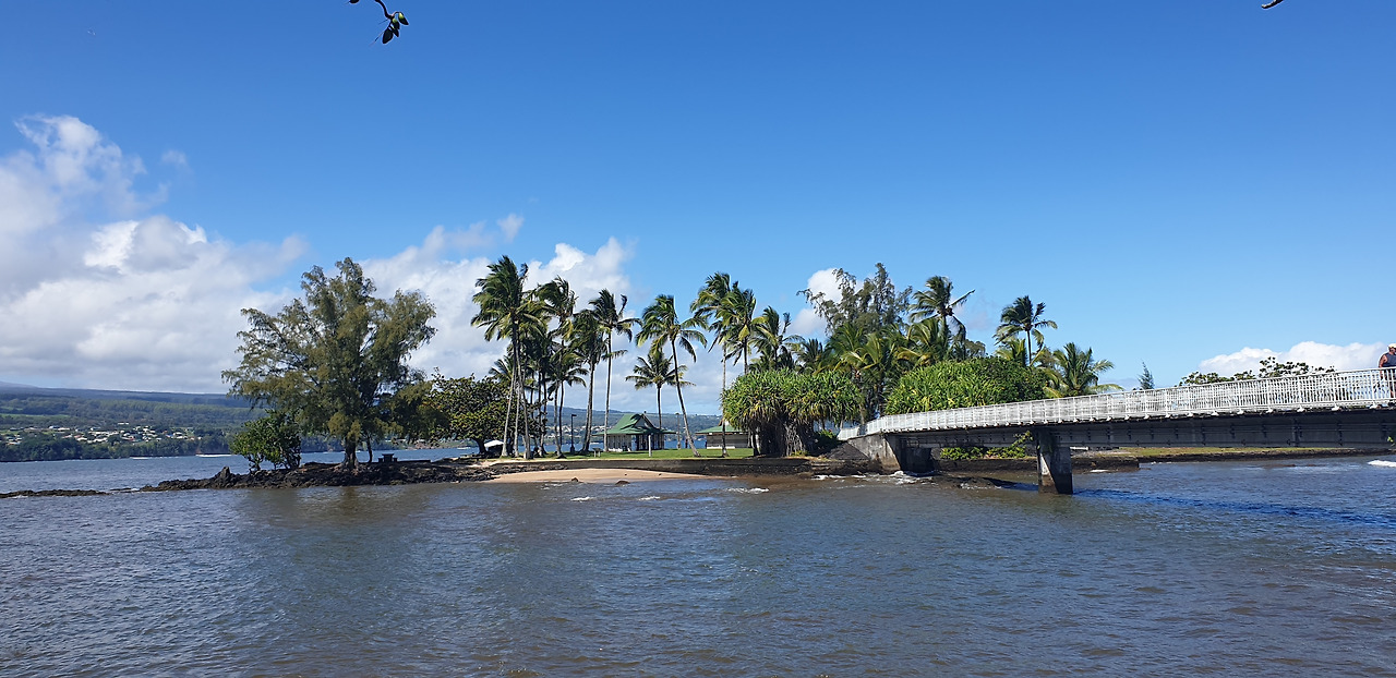 빅아일랜드의 최대 도시는 코나(Kona)가 아니고 힐로(Hilo)다. 거리가 멀어 망설이다 후회할 것 같아 일정에 넣었다. 핸들을 잡은 지 한 시간 반 만에 힐로 시내를 한눈에 조망할 수 있는 코코넛 아일랜드에 도착, 시간 절약을 위해 준비해 둔 간식으로 허기를 면했다. 코나의 바다가 동해라면, 힐로의 바다는 서해 같다. 모래가 많은지 물이 탁해 보이나 파도는 잔잔했다. 바닷물이 발등으로 쏟아질 것 같이 가까운 Onomea bay lookout을 거쳐 Akaka fall trail을 걸었다. 30여분 정도 열대 우림을 걸으면 높이 135m로 하와이 최대 규모의 폭포를 만나게 된다.