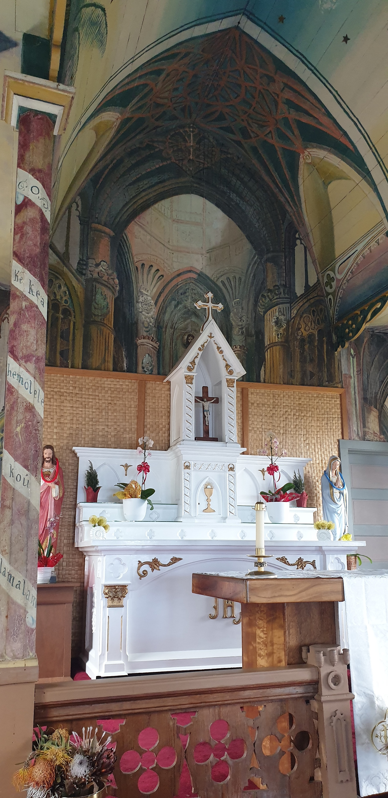 빅아일랜드의 첫날 일정은 숙소가 있는 Kona 근처의 바닷가를 가볍게 돌아보기로. 폴 목사님이 찍어주신 포인트들을 내비게이션 앱인 Waze에 미리 저장해 두니 세상 편하다. 시내만 벗어나면 신호등도 차도 몇 대 없는 환상의 해안 드라이브 코스가 펼쳐진다. Hikiau Heiau에서 제임스 쿡 전망대를 조망하고, 푸우호누아 호나우나우 역사공원과 스노클링으로 유명한 Two-step beach, 그리고 나병 환자의 아버지 데미안 신부님이 세우신 St. Benedict painted church를 돌아보았다. 제임스 쿡은 하와이, 뉴질랜드, 호주 등을 발견한 영국의 탐험가이자 항해사다. 데미안 신부님은 벨기에 출신으로 1880년대에 하와이 몰로카이 섬에서 한센병환자들을 섬기다 스스로도 한센병으로 순교하신 분이다.