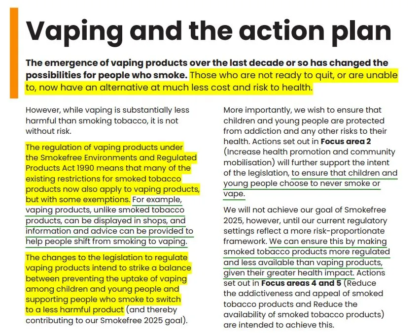 2025년까지 흡연율 5% 미만의 담배종결전(Tobacco Endgame)을 달성하기 위해 뉴질랜드 정부가 Vaping을 어떻게 활용할 것인지는 아래 전문에 잘 정리되어 있다.