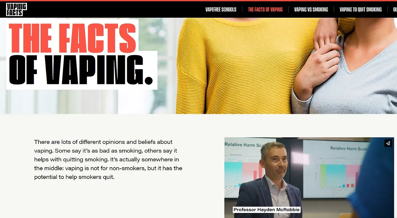 이제 뉴질랜드 정부가 제공하는 Vaping Facts라는 사이트를 구경해 보자.