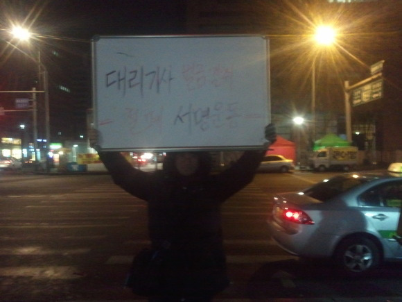 아..반성이 절로 됩니다. 서명운동을 준비하면서도, 걱정이 앞섰고, 얼마나 호응할지, 홍보연설은 잘 할 수 있을지, 불안하기만 했습니다. 하지만 기사님들 앞에서 외쳐대니 한결 자신감만 늘어갑니다. 오늘밤 우리가 이렇게 나와서 실천하지 않았더라면, 우리는 아마 투덜대기만 하다가, 세상을 원망하고 뭉치지 못하는 기사 탓만 하면서 돌아다녔을 겁니다.
