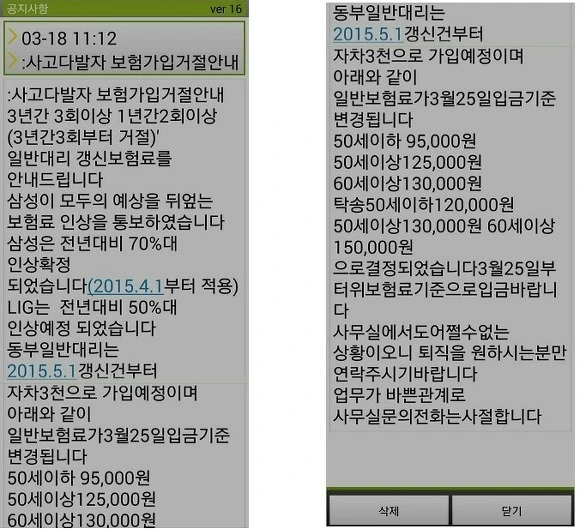 참고로 지금 대리판 단체보험의 문제점은 퀵서비스, 용달, 택배업계에도 동일합니다. 수십년간 대한민국의 많은 운수업계에 단체보험의 횡령과 도적질이 광범위하게, 엄청난 규모로 진행이 되고, 정착(?) 되어 있다는 겁니다. 대리보험문제 해결, 사실 거대한 사회적 부조리 및 부패의 고리와 맞서야 하는 것입니다. 각설하고...
