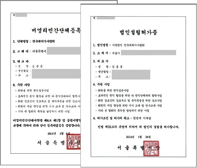 2014년 초, 전국대리기사협회는 업계 최초로 서울시로부터 사단법인과 비영리민간단체의 인가를 동시에 받아냈습니다. 그간 대리기사의 권익과 생존권, 단결을 위해 앞장서 노력해온 전국대리기사협회가 서울시로부터 그 성과와 자격을 인정받은 것입니다.