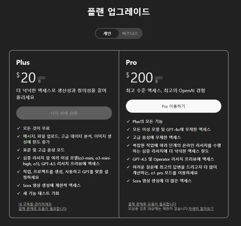 GPT의 사용 경험은 시간이 지날수록 가격과 기능이 함께 변화하는 구조로 진화해 왔다. 20달러는 커피 몇 잔을 포기하는 정도의 선택으로도 교환 가능한 가볍고 일상적인 지출이다. 그러나 200달러는, 그 금액을 감당하기 위해 제법 큰 무언가를 포기해야 하는 수준의 비용이다.