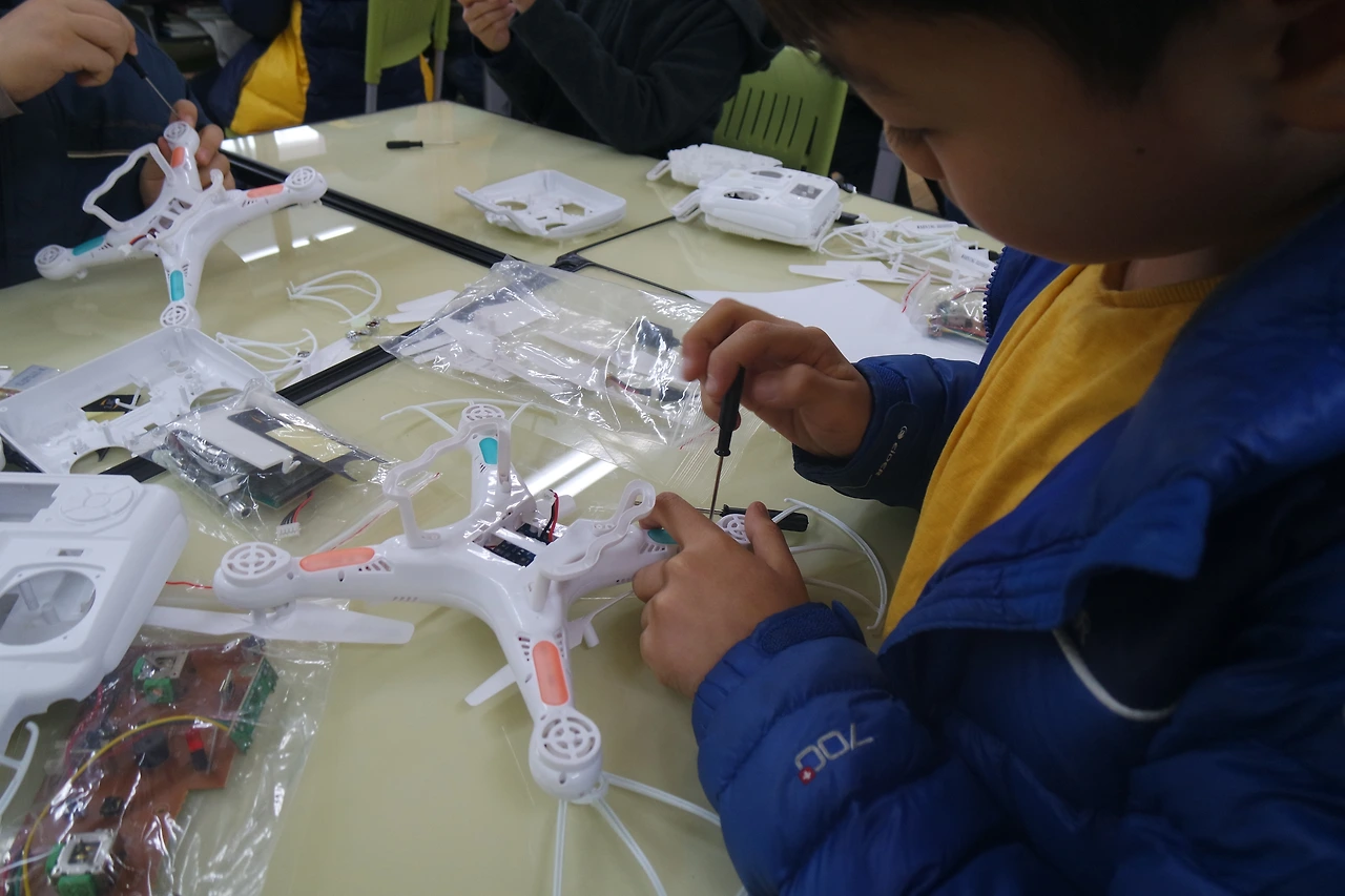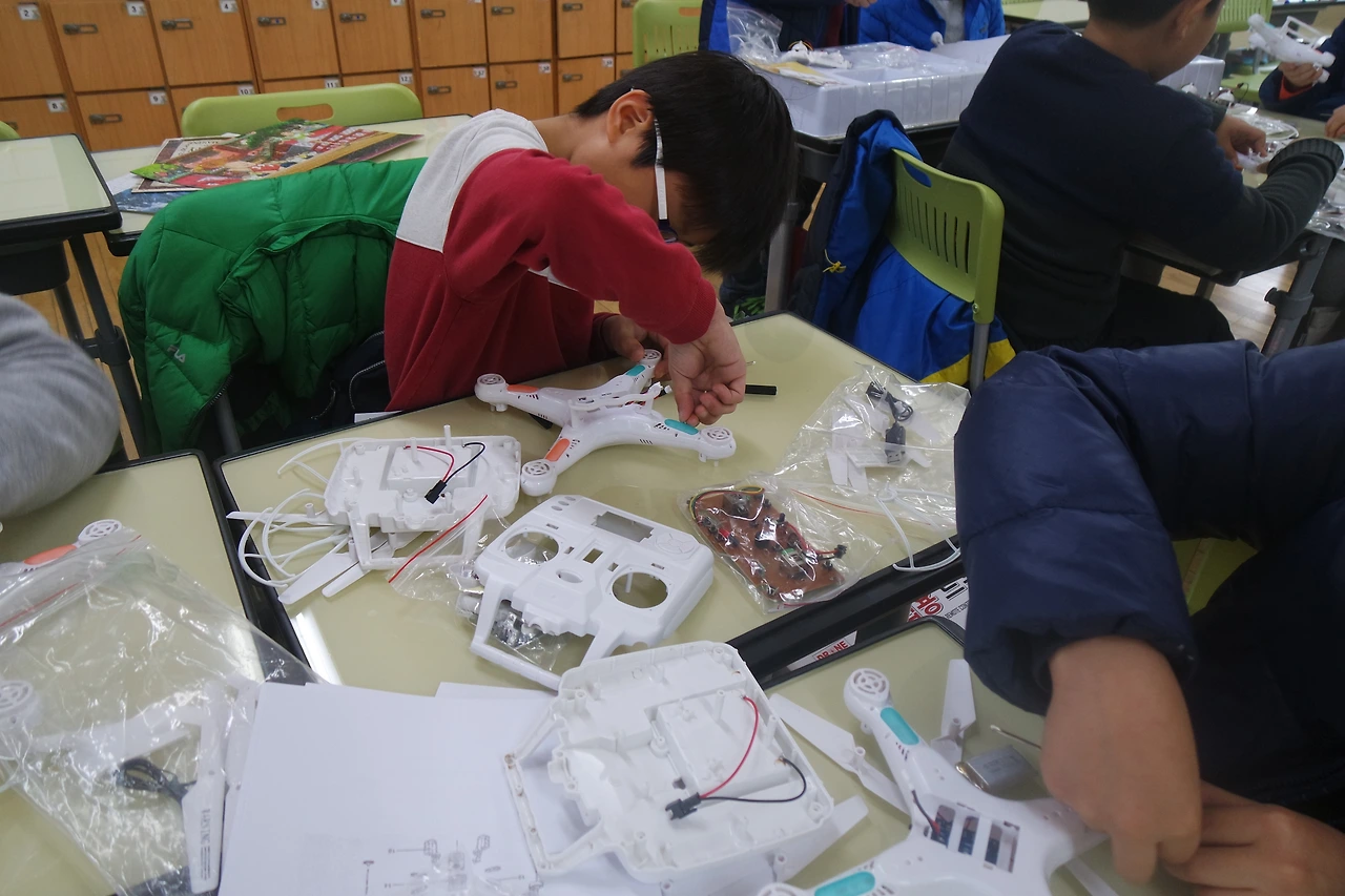 확실히 학생들은 이론보다는 실습에 더 집중하고 관심 있어 합니다. 학생들이 직접 체험해보니 굉장히 활기차고 즐거워합니다. 말수도 적고 소극적이었던 학생이 물어보기도 하고 열심히 해서 놀랍기도 하고 무언가를 만드는 데에 모두가 열정적이고 집중력이 어마어마했습니다. 15명을 상대해서 힘이 조금 들었지만 초등학생이 있는 학부모님들에게는 학생에게 조립용 드론 키트 하나 주면 학생의 엄청난 집중으로 인해 잠시나마 쉴 수 있는 시간이 생길 겁니다.