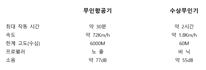 무인 항공기와 수중 무인기의 각각 장단점을 살펴보도록 하자.