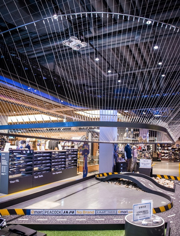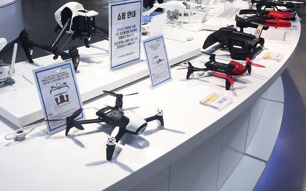 이곳은 직원의 안내에 따라 진열 상품 시연이 가능한 곳입니다. 그러니 가지고 있던 드론을 가져와서 날려볼 생각은 하지 맙시다.