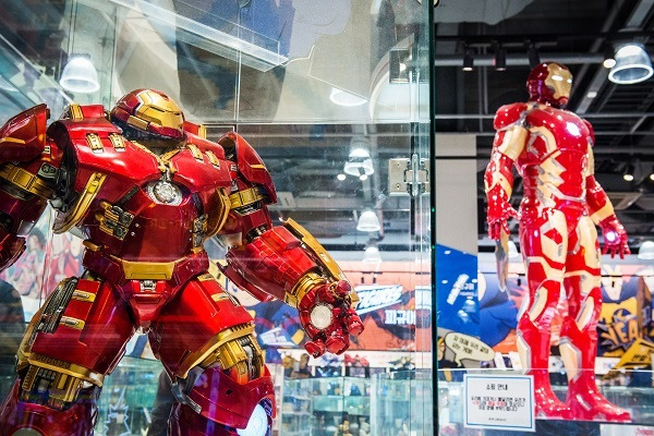 이제 아이와 함게 드론을 만나기 위해 앞에 설명한 드론 섹션 최단 루트를 따라갑니다. 그 여정 중에 만나는 뽀얀 컴퓨터들과 가슴을 울리는 스피커들 앞에서 잠시 음악에 흥을 빼앗기더라도 부동자세의 아이언 맨을 만나면 반갑게 인사합시다.