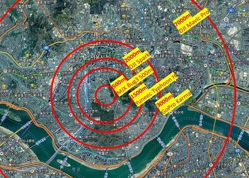 물론 서울은 함부로 드론이 날지 못하는 곳이 많아 상상과 드론의 사양으로만 비교해 봐야 겠습니다.