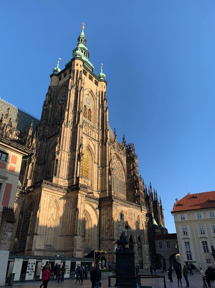 하루 동안 탔다고 벌써 익숙해진 트램 22번을 타고 관광지로 나갔다 트램에서 내려 걷다 보니 점점 비투스 성당의 형태가 나오고 있었고 옆쪽에서 살짝 본 성당이 너무 정교해 기대감을 더 높였다