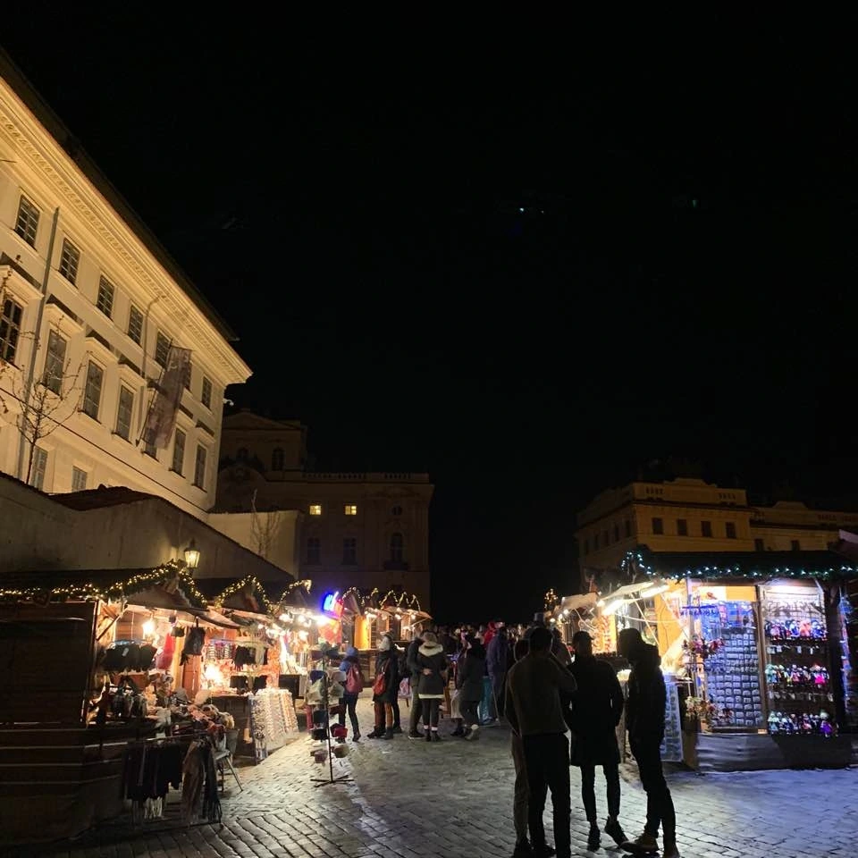 트램을 타러 가는 길에 밤이 되니 크리스마스 마켓이 문을 열었다