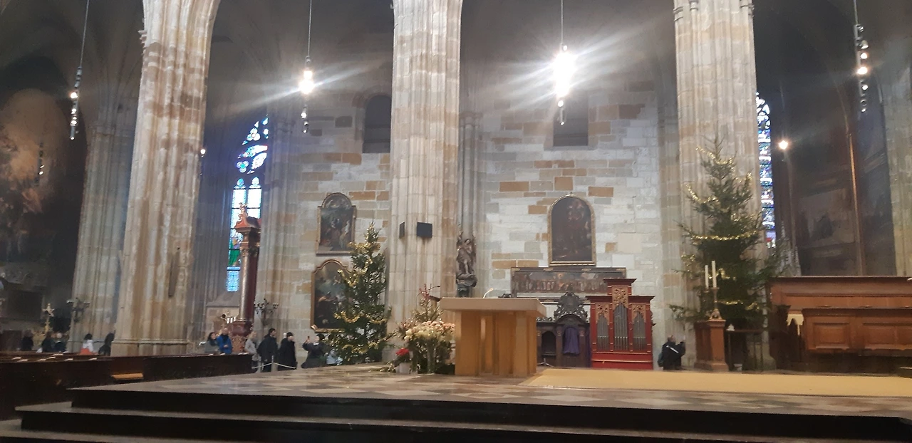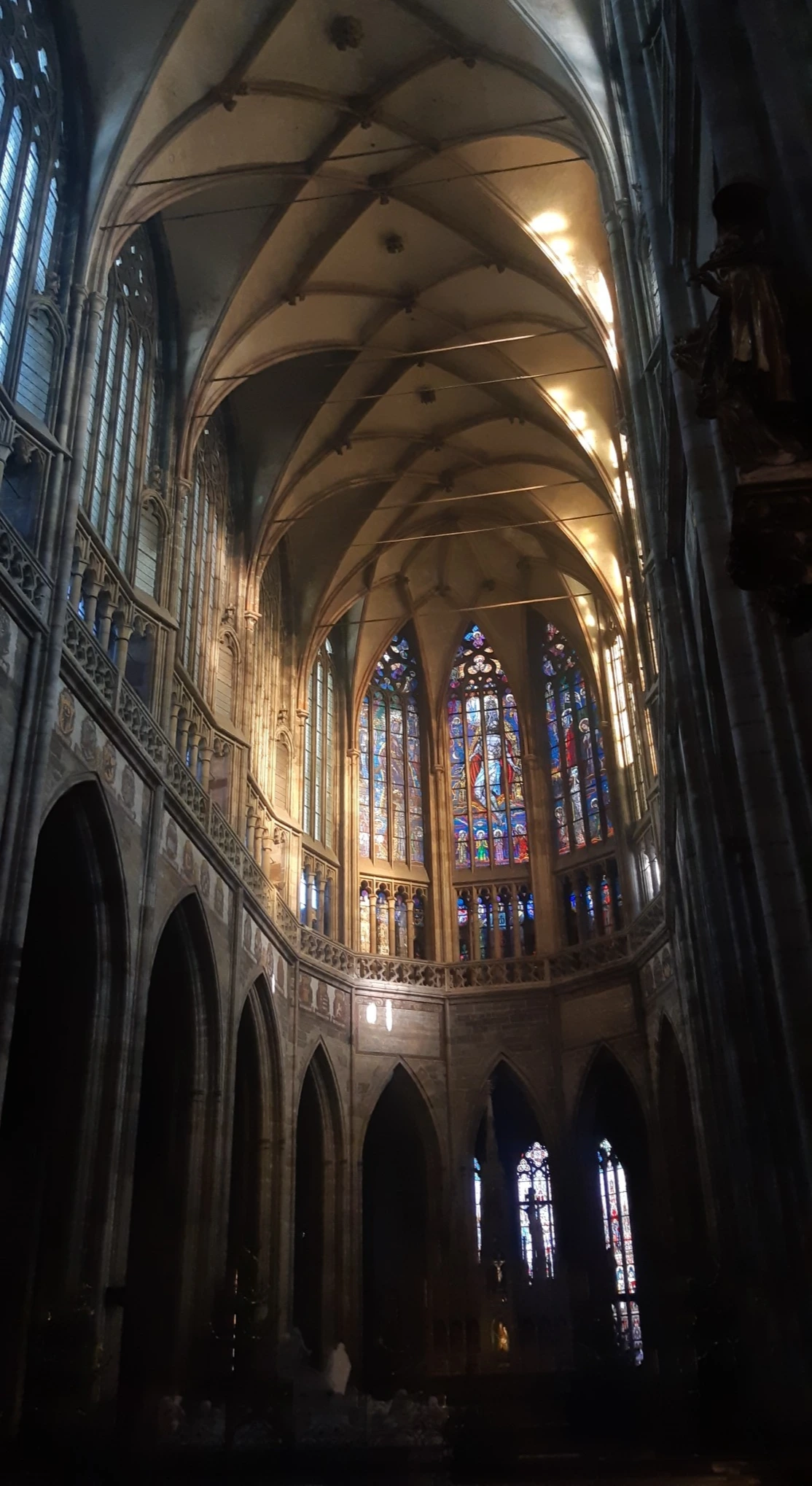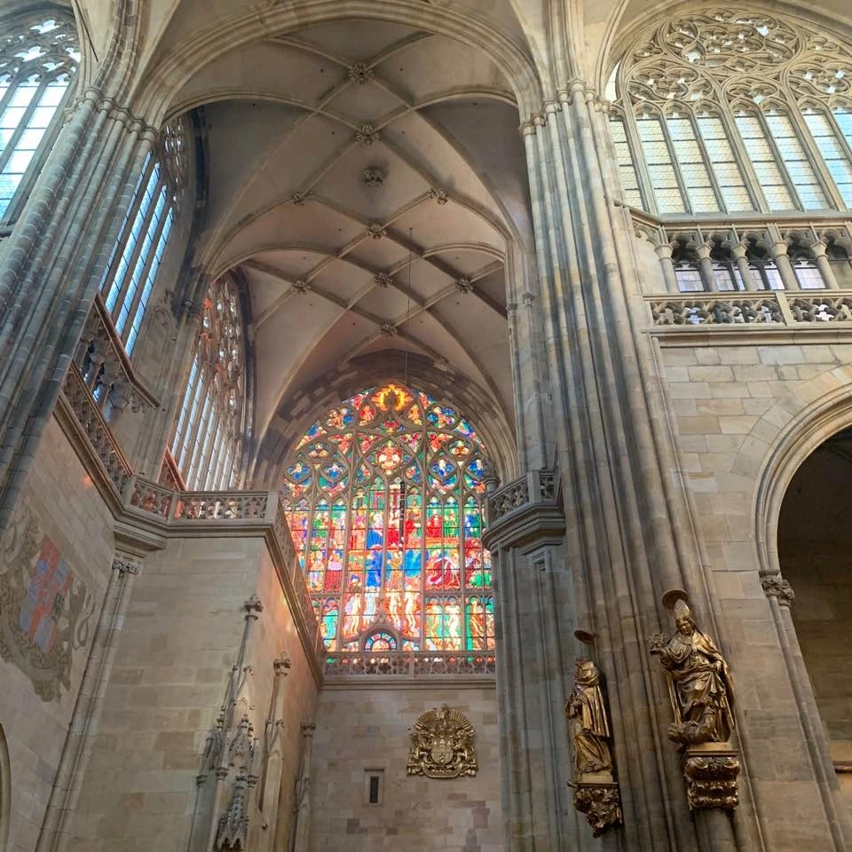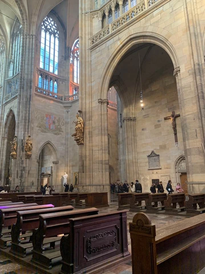 겉모습의 화려함에 내부는 어떨까 두근거리는 마음으로 들어간 비투스 성당은 생각보다 더 웅장하고 엄청난 곳이었다 성당의 층고와 넓이는 그 웅장함을 더해주었고 스테인드글라스를 통해 들어온 햇빛은 아름다운 빛의 향연을 만들었다