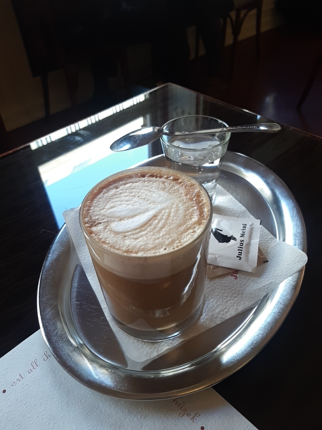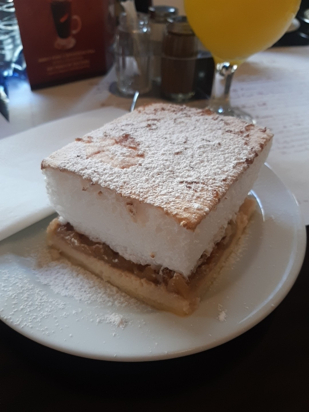 잠깐의 웨이팅이 있었지만 금방 들어갔다 나는 오렌지주스와 디저트를 시켰는데 주스가 진짜 100% 오렌지주스처럼 싱그러운 맛이었다 카페 분위기도 고급지고 좋아서 가격을 걱정했지만 가성비가 괜찮은 곳이어서 유럽의 분위기를 느끼고 싶은 분께 추천하는 장소이다