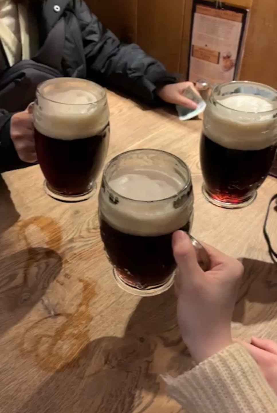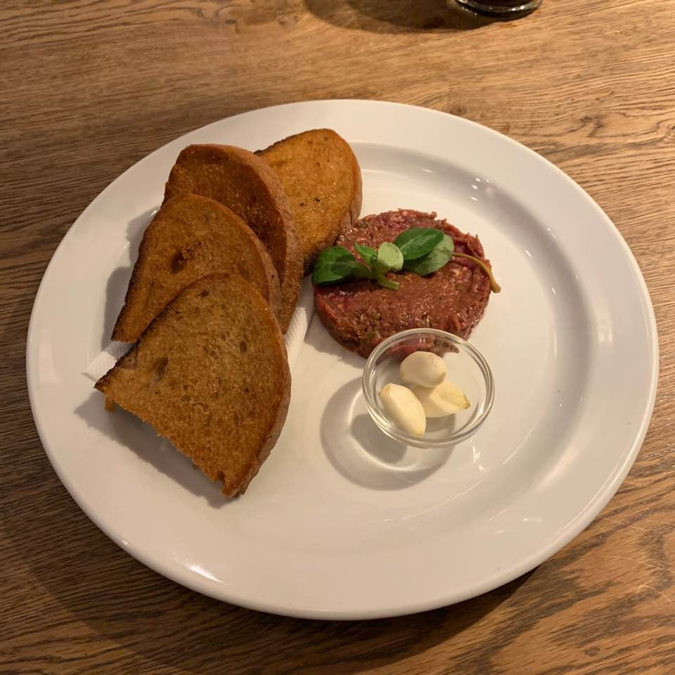 내일 체코를 떠나기 때문에 환전을 더 안 해서 우리는 있는 돈을 다 털어 흑맥주 세잔과 우리나라 육회와 비슷한 타르타르라는 음식, 감자칩을 시켰다 흑맥주는 한잔에 56 코루나, 타르타르는 185 코루나, 감자칩은 89 코루나였다