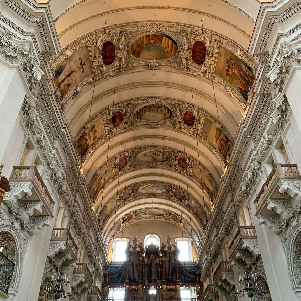 구조가 복잡하여 길 따라 구경을 하다 보니 야외테라스로 나오게 되었고 테라스를 따라가다 보면 문이 하나 나오는데 그곳은 잘츠부르크 대성당 2층으로 들어가는 문이었다