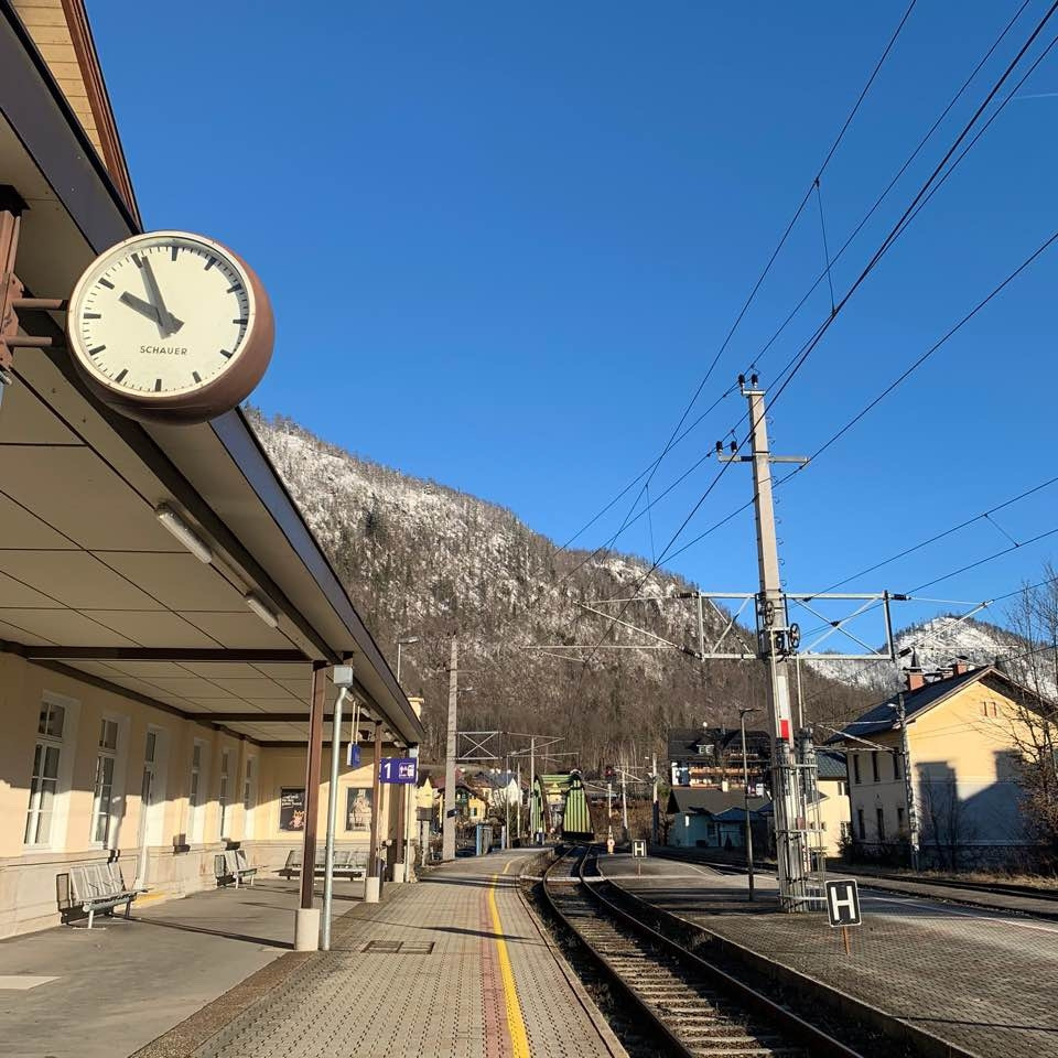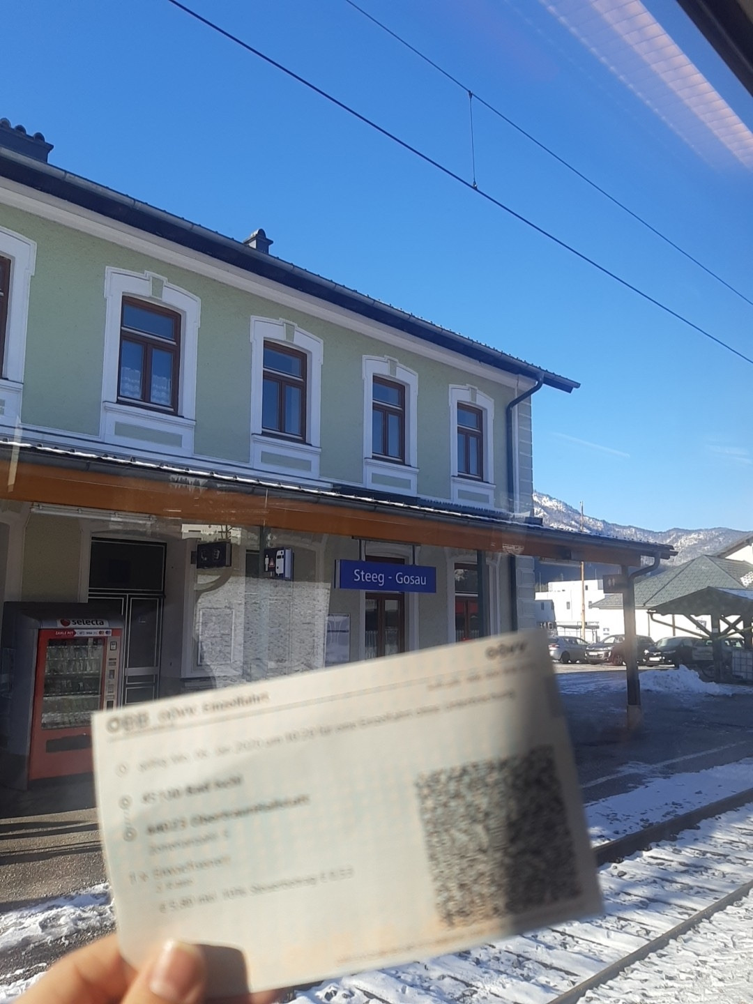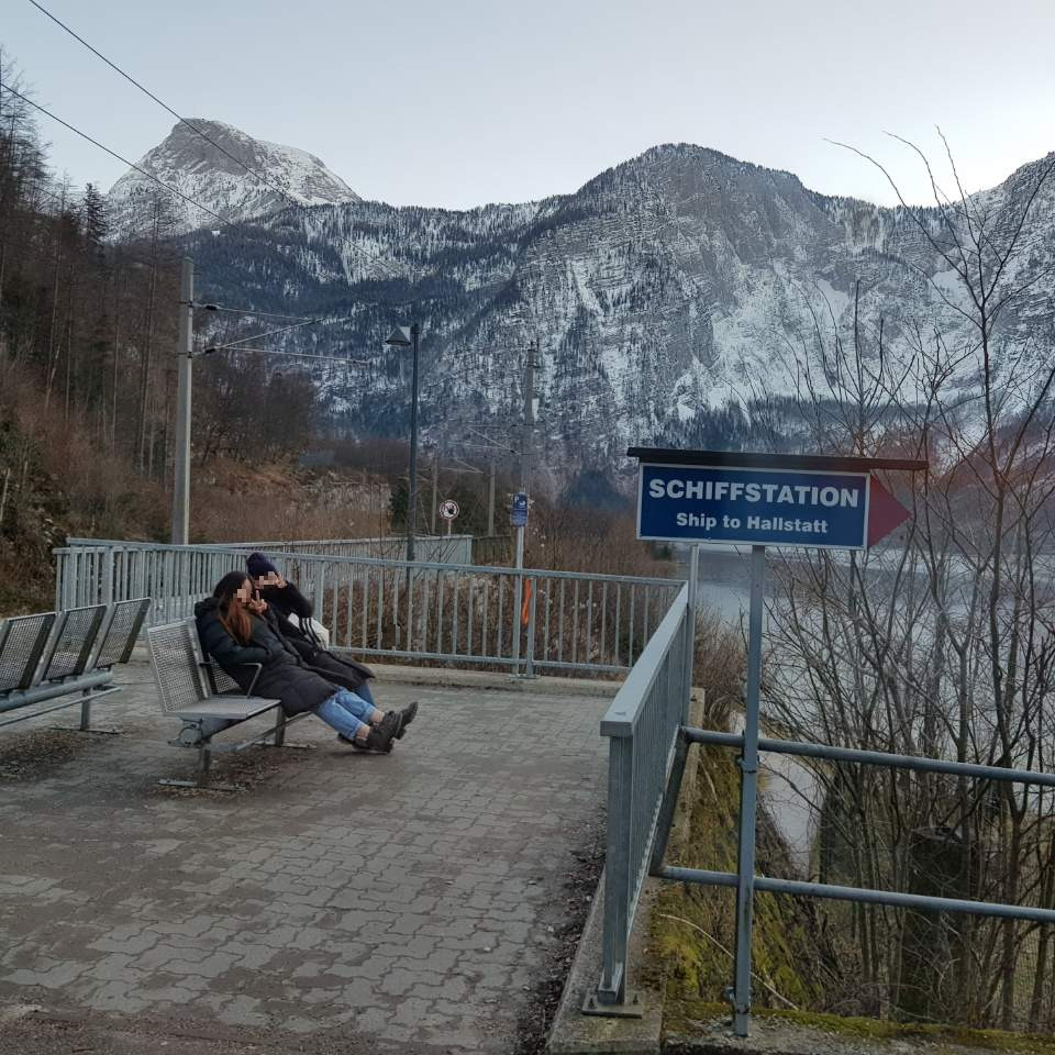 할슈타트행 기차로 갈아타면 약 15분 뒤면 도착한다 기차역에서