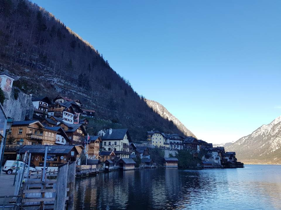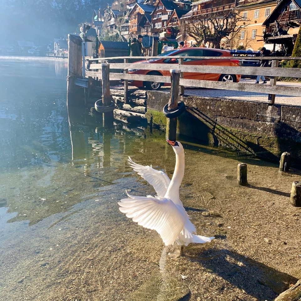 눈 덮인 산맥과 마을. 그곳은 영화 ‘겨울왕국’을 연상케 하였고 실제로 겨울왕국에 등장하는 나라 ‘아렌델’의 모티브가 된 곳이기도 했다 선착장에 내려 옆길로 가보니 호수에 있는 백조무리를 볼 수 있었다
