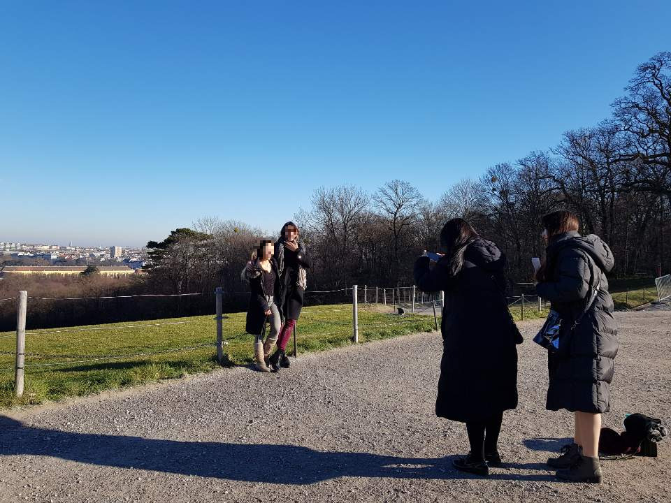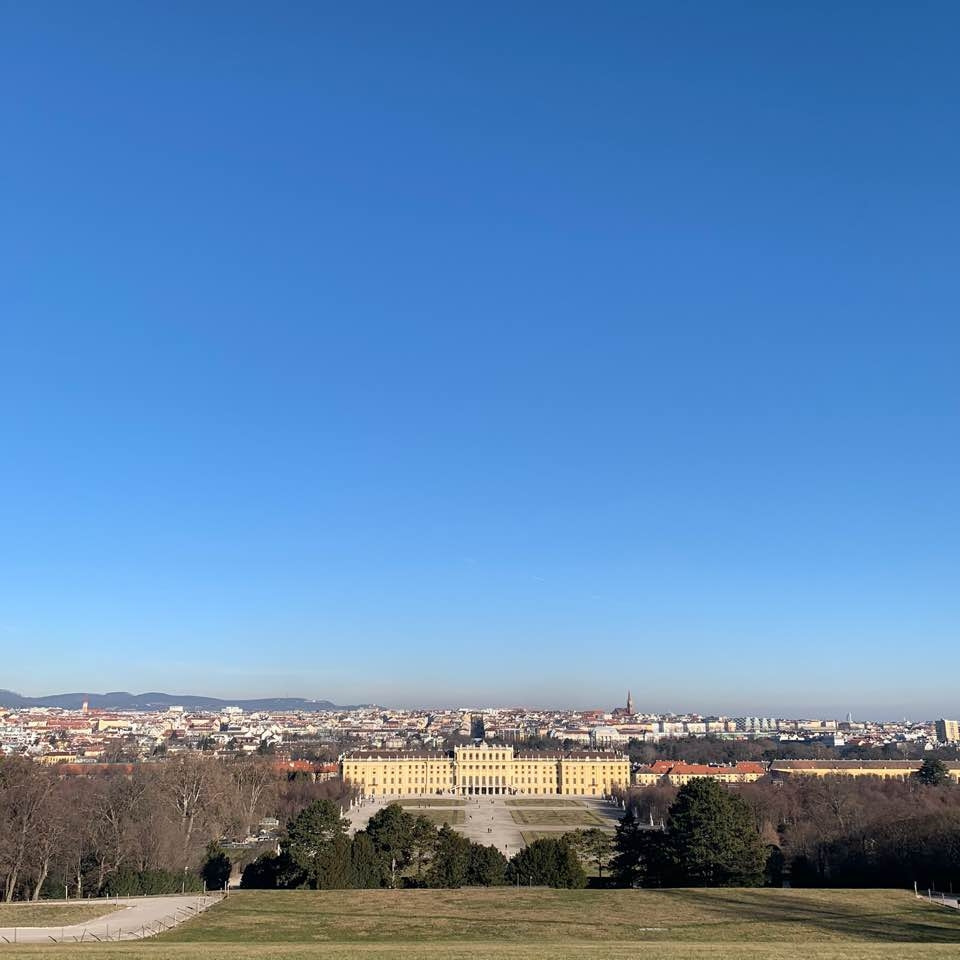 경사진 정원 위를 올라가니 쇤부른 궁전뿐만 아니라 뒤로는 빈 시내와 슈테판 대성당도 보였다 날씨도 도와주 듯 맑고 깨끗한 하늘을 보여주어 더 멋있는 경관을 볼 수 있었다