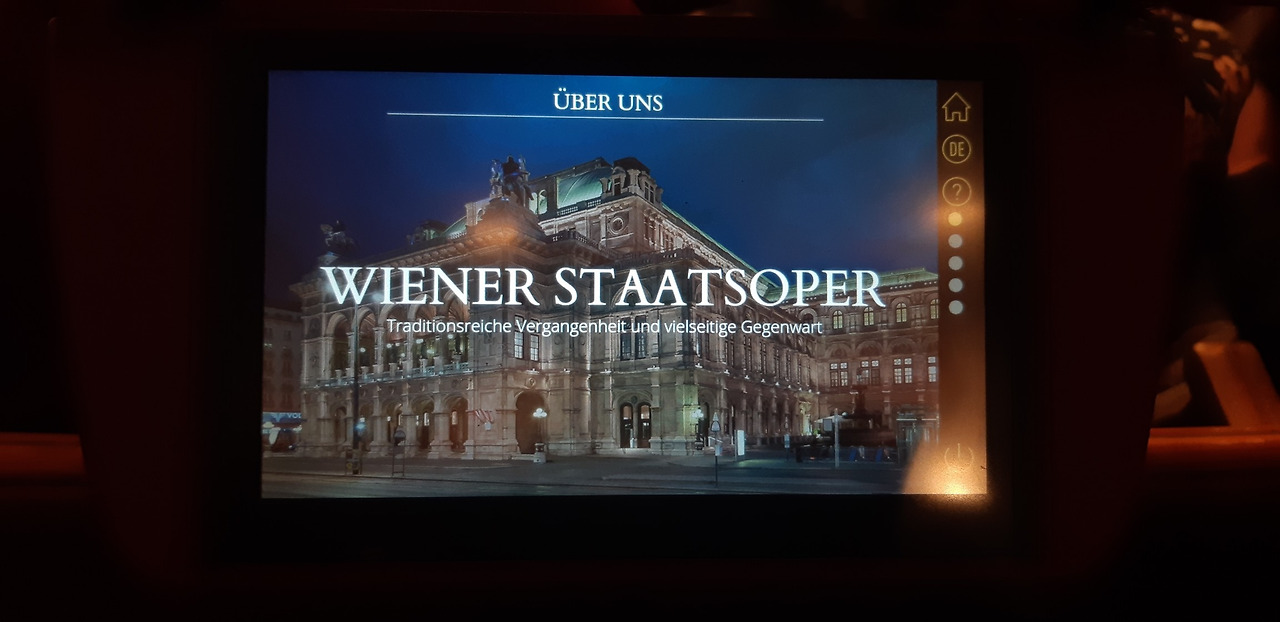 좌석 앞에는 작은 모니터가 있었는데 오늘 공연 정보와 오페라하우스에 대한 정보를 볼 수 있었다