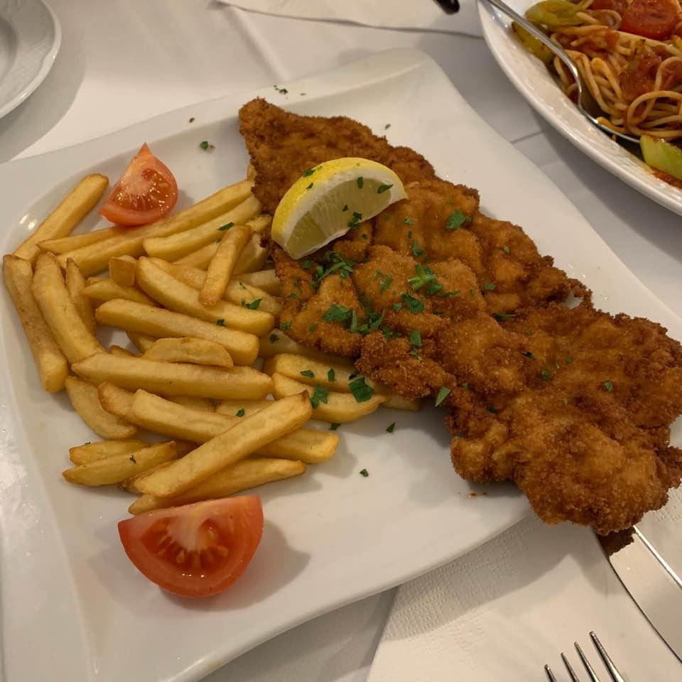 역시나 빠질 수 없던 슈니첼! 지금까지 먹어본 후기로는 대부분의 슈니첼은 다양한 형태의 감자와 함께 나왔고 오늘 슈니첼에는 감자튀김과 함께 나왔다