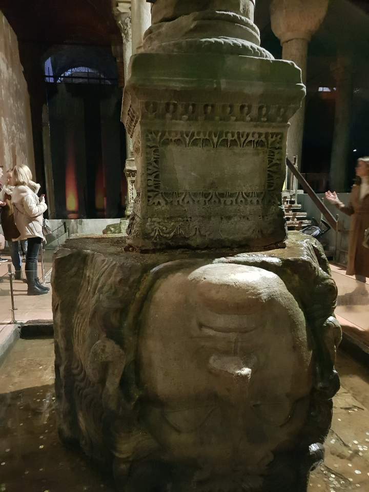 메두사머리가 기둥 받침대로 사용된 부분도 있는데 머리를 거꾸로 해 놓은 것은 돌로 변하지 않기 위함이라는 말이 있다 또한 기둥 중에 물방을 무늬가 있는 기둥이 있었는데 그것은 이곳에서 일하다 돌아가신 분들을 기리기 위함이라고 한다 이런 의미들 때문에 이곳은 아직도 인상 깊은 장소로 기억에 남아있다