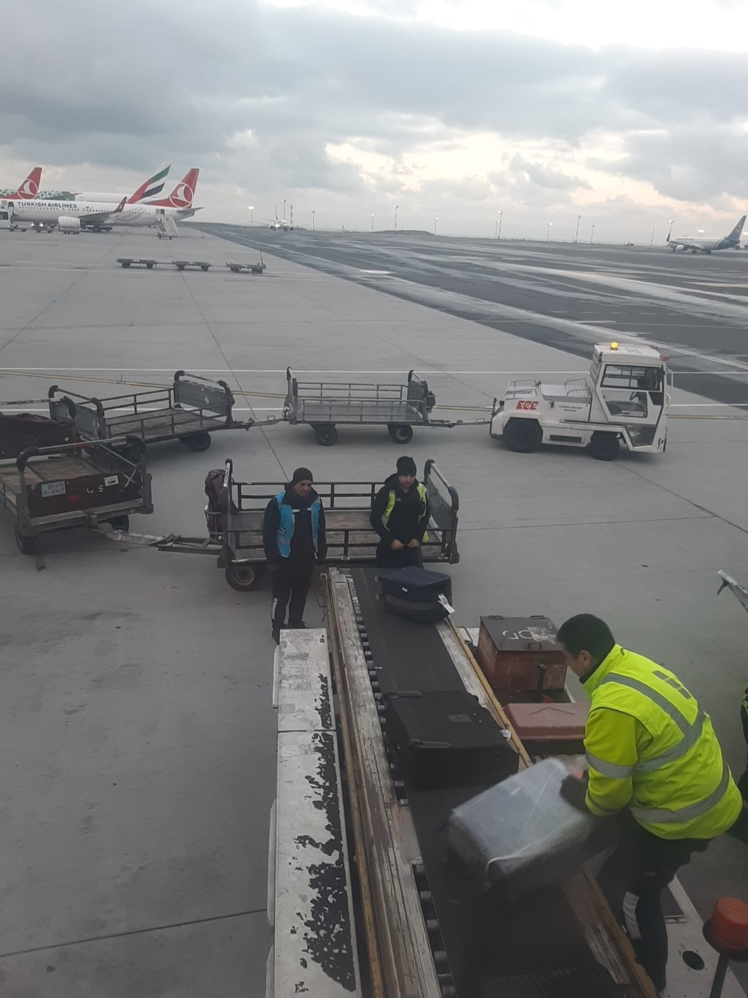 비행은 4시간 정도가 소요되었으며 다시 이스탄불 공항을 만나게 되었다 비행기 착륙 후에 내리기까지 잠시 대기 시간이 있었는데 내 좌석이 창가 쪽에서도 짐칸 입구 쪽에 있었다 창문을 통해 바깥을 보았을 때 짐을 일일이 빼서 옮기시는 분들을 볼 수 있었다