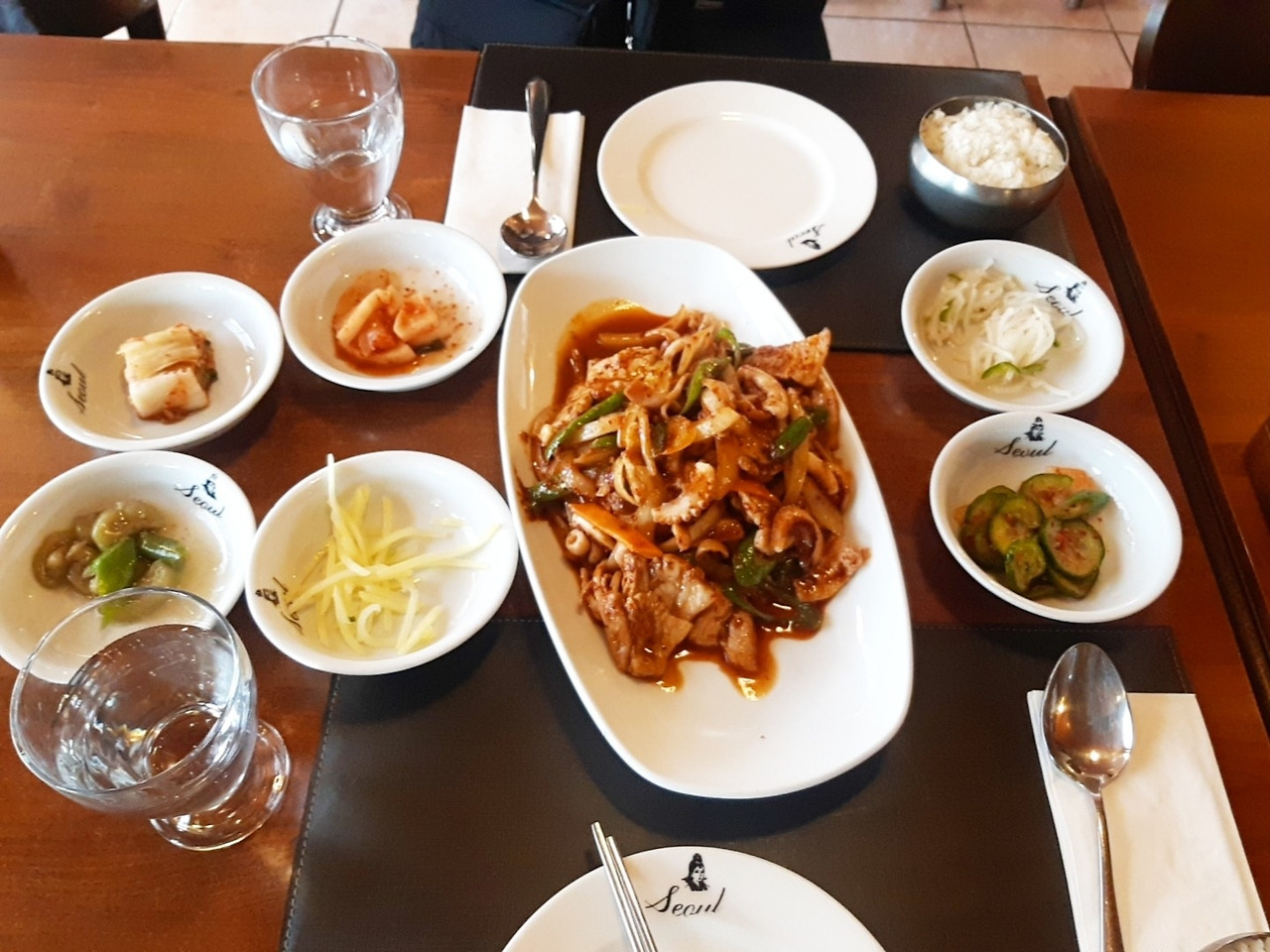 그랜드바자르를 빠져나온 우리는 놀란 마음을 달래기 위해 한식을 먹기로 했다 찾아간 곳은 한국분들의 리뷰가 좋았던 '서울정'이라는 곳이었다 1층은 간단한 계산대만 있었고 밥을 먹는 곳은 2층이었는데 계단부터 가게 인테리어 모두 한국식으로 되어있었다 특히 매장에는 계속 k-pop이 나와서 한국에 온 느낌이었다