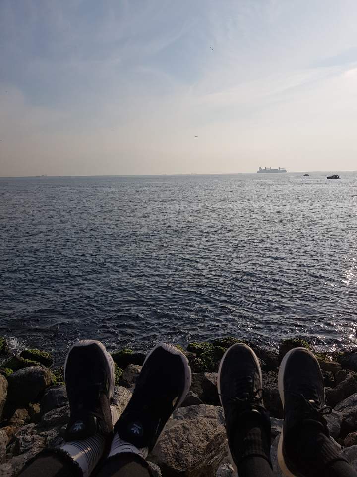 이 바다는 마르마라 해로 에게해로 이어지는 바다였다 한국에서 동해, 서해, 남해만 보다가 이런 새로운 이름의 바다를 보니 뭔가 더 새로워 보였다 공기도 맑고 날도 따뜻해서 바다를 보며 앉아있기에 너무 좋은 날씨였다 간단하게 길 따라 걷고 노래를 들으며 벤치에 앉아 산뜻한 바닷바람을 소리 삼아 물멍도 때려보았다